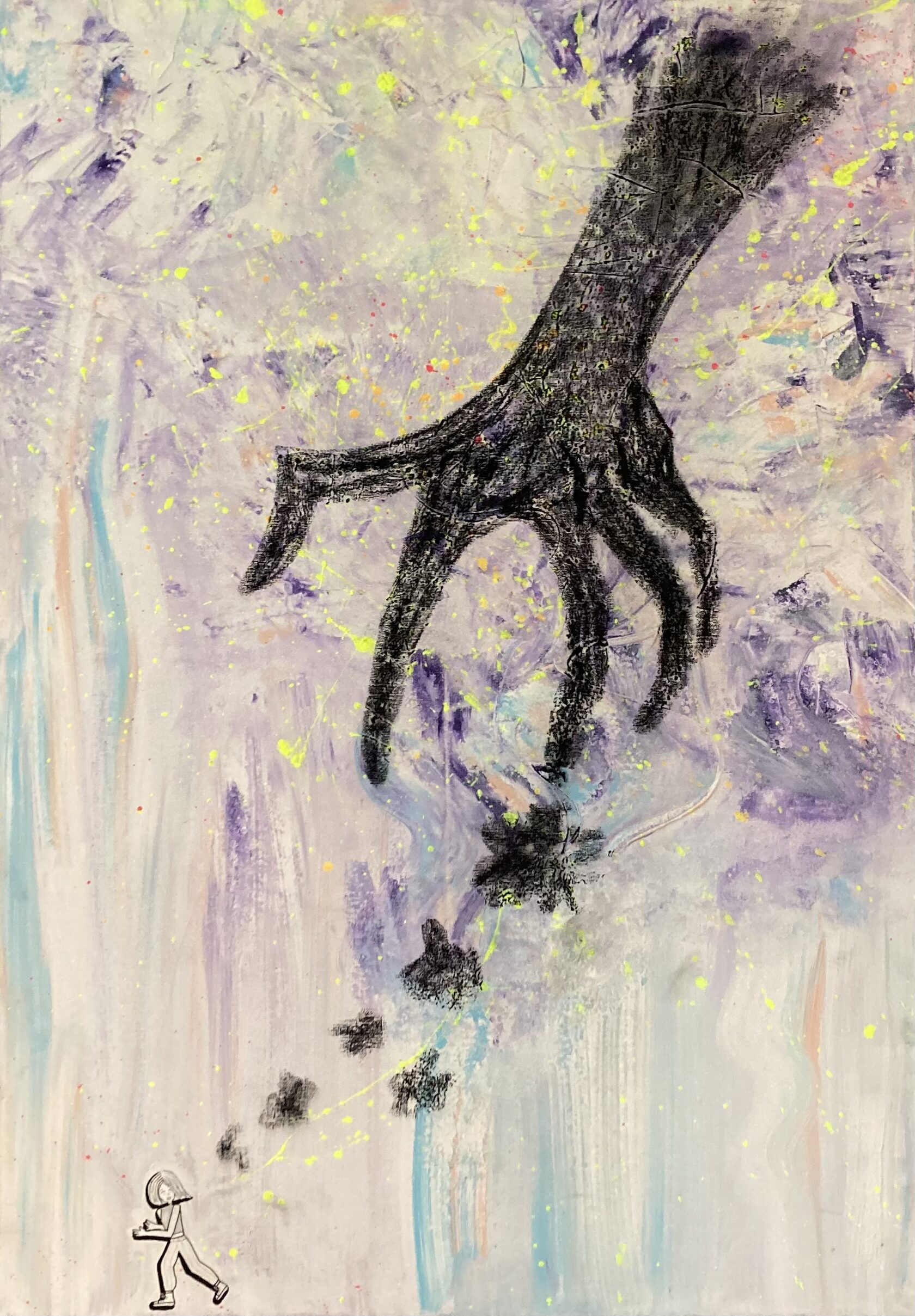 “Escape” 70*50 acrylic, ink liner, dry pastel